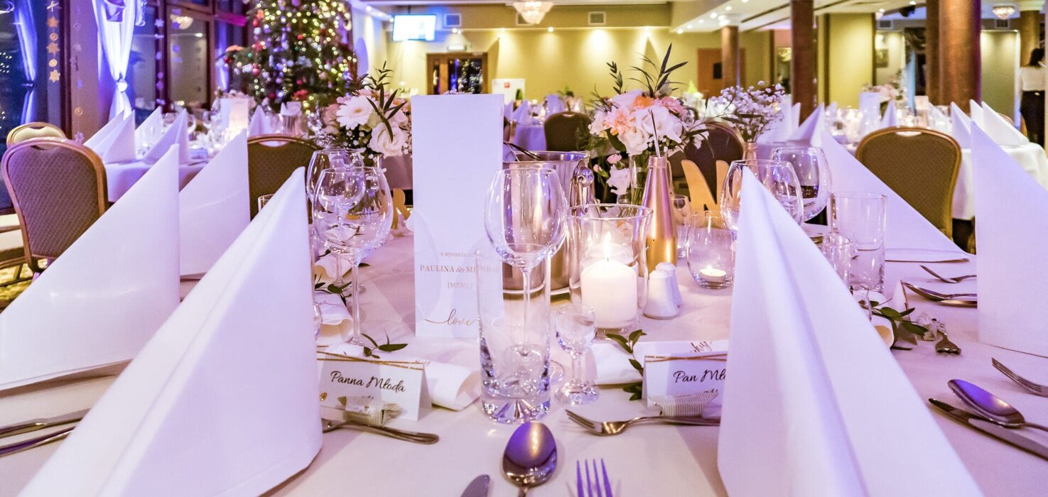 Organizujemy uroczyste bankiety, wesela, wszelkiego rodzaju imprezy okolicznościowe oraz firmowe. Sala Panorama może pomieścić do 150 osób.